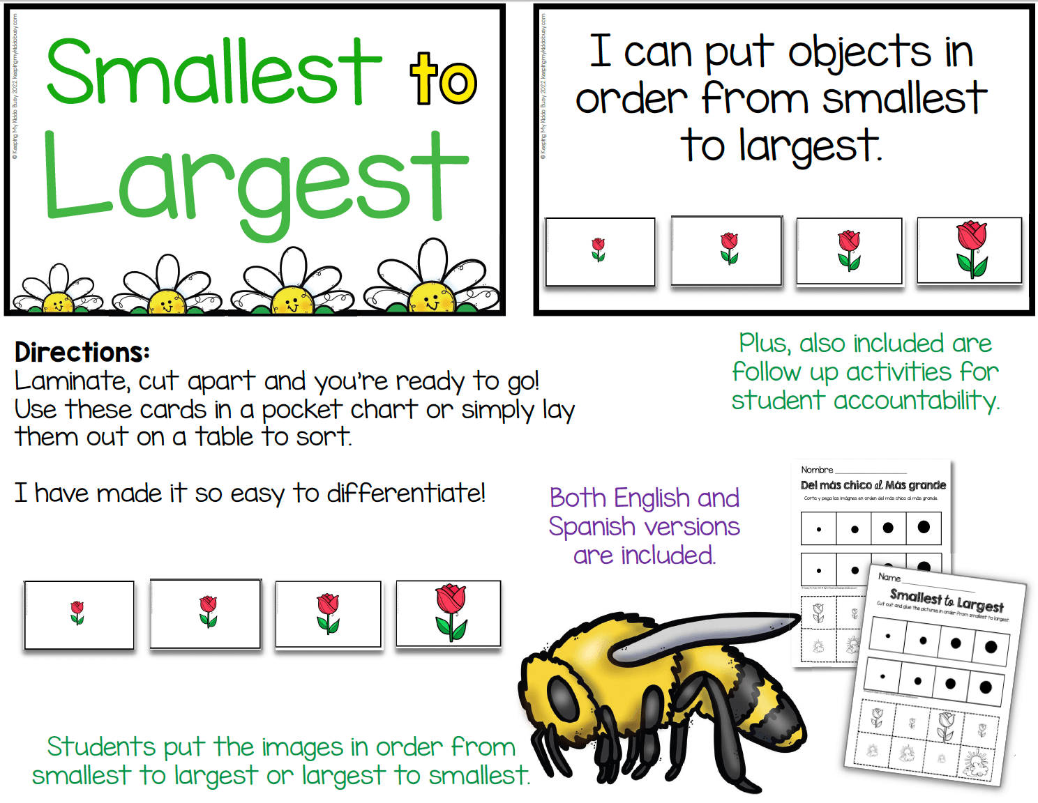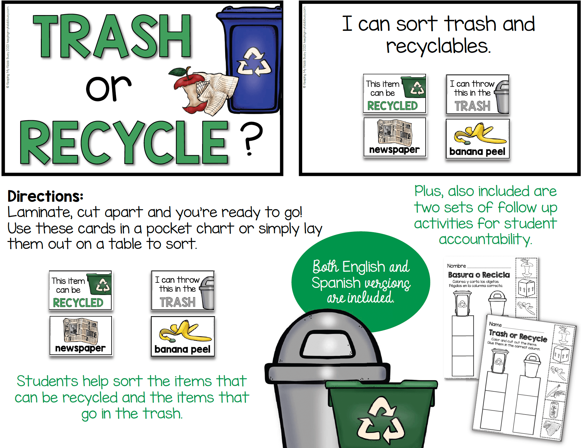 Each month will come with 8 individual pocket chart centers for a total of 80 centers (most will include Spanish versions too!)