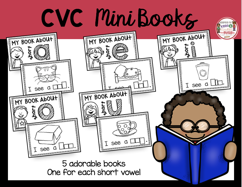 Because the books are targeted by short vowel, it makes it easy to coordinate with the worksheets and anchor charts.