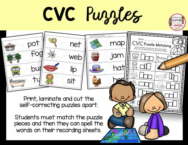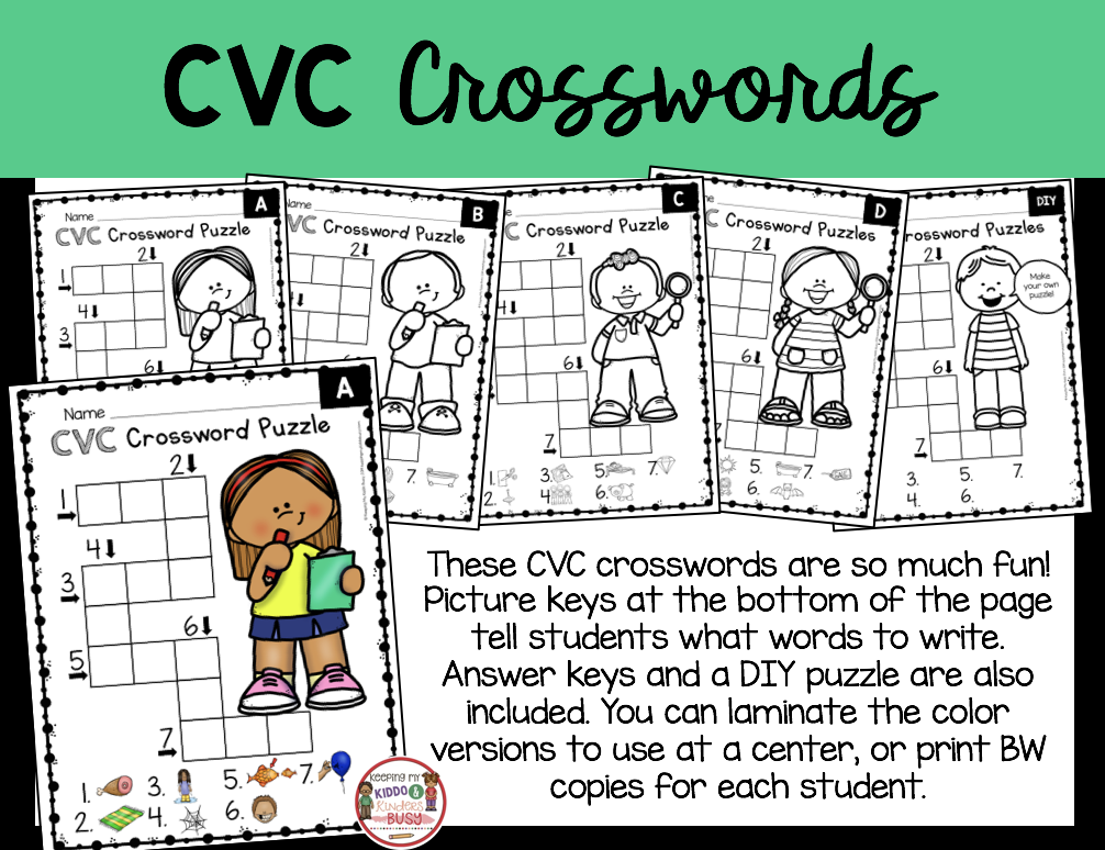 Print these free sample activities including this adorable CVC crossword and a CVC short story