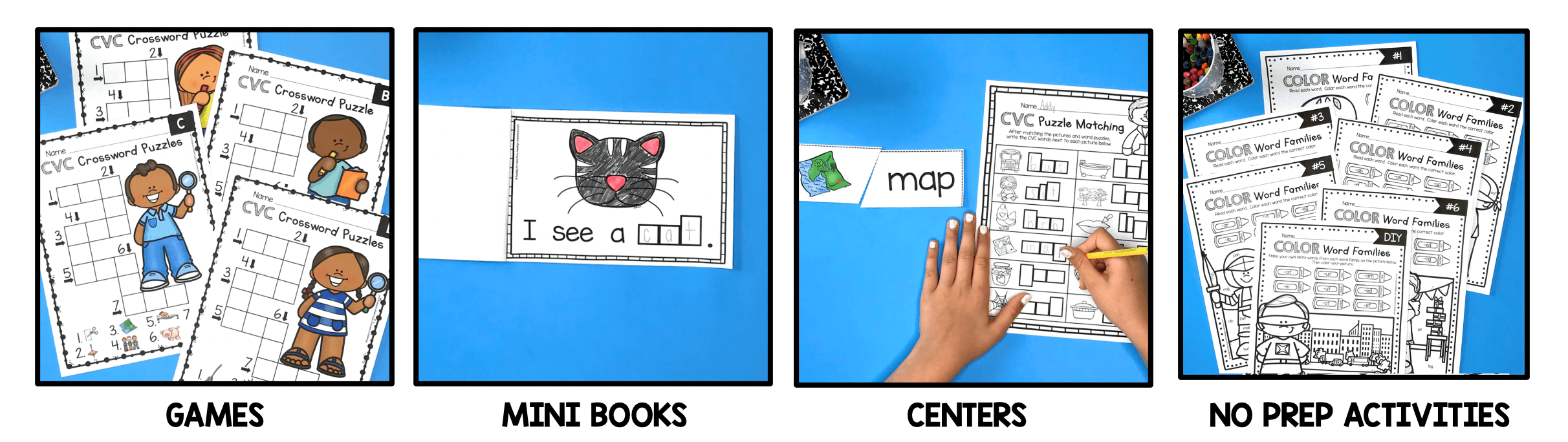For even more practice on specific short vowel word families, I just released new WORD FAMILY activities.