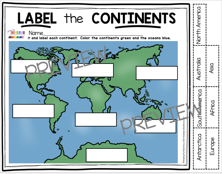 We labeled the continents last week, so students saw the world with oceans and land masses.