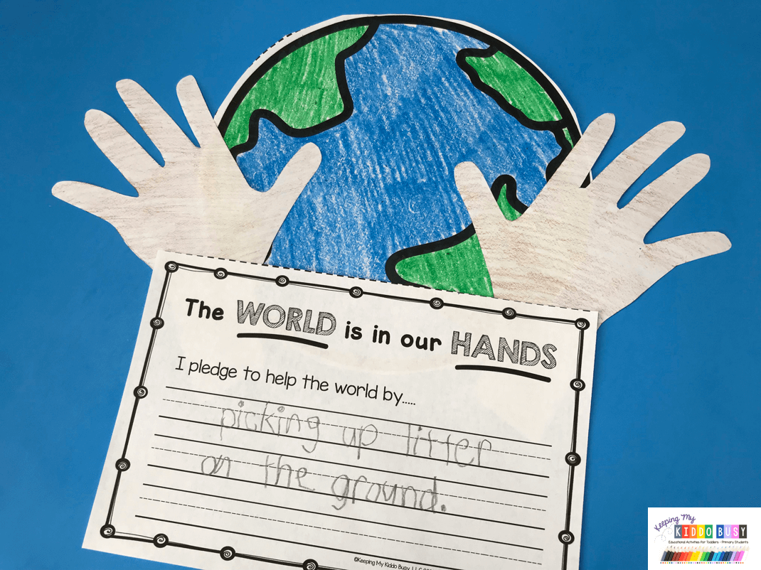 Trace students hands, cut them out and glue them to the Earth that they color/paint.