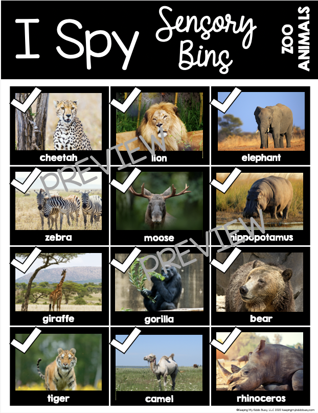 I have so many fun themes to share with you, and I will be adding more to this post soon. I have made really fun “I Spy” printables that go with these sensory bins.