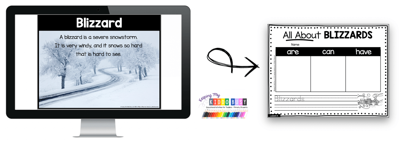 Students get so excited to learn about extreme weather. First, I show each slide and the kids are glued to the slideshow.
