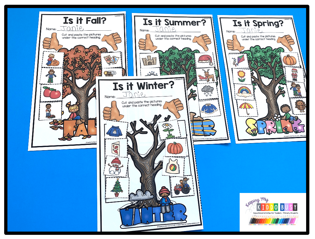 Now that we have learned about each season, we review all four seasons. These adorable sorts are perfect for primary students!
