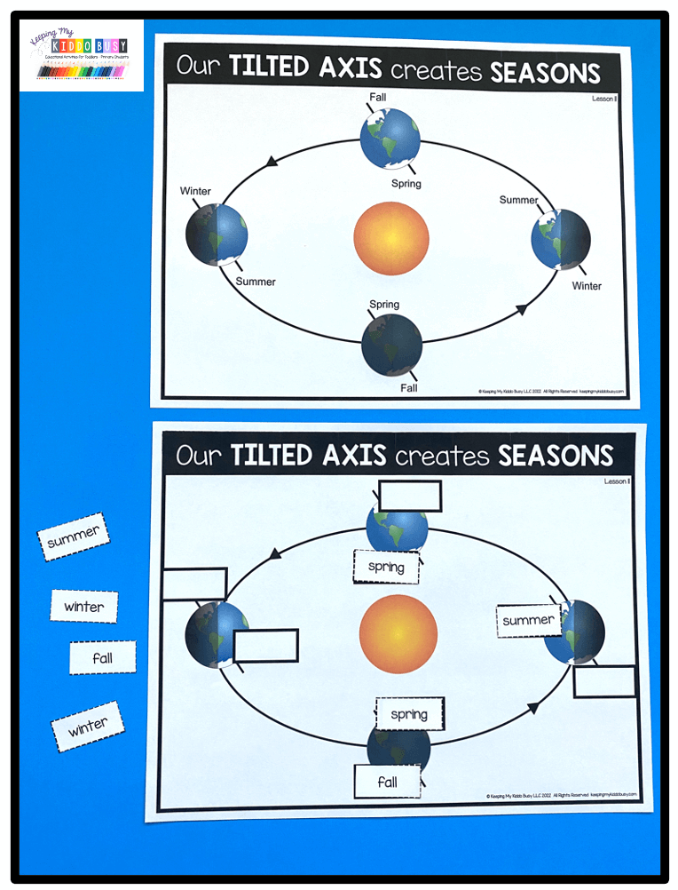 We dive deeper into how the Earth’s tilt creates our seasons. Today I show this slide and then we do the cut/paste activity.