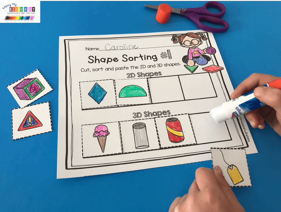 Included are sorts for 2D vs 3D and sorting shapes regardless of orientation and size (CCSS.MATH.CONTENT.K.G.A.2)