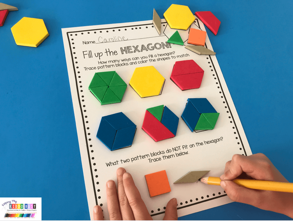 See how many different ways students can use pattern blocks to fill up the hexagons.