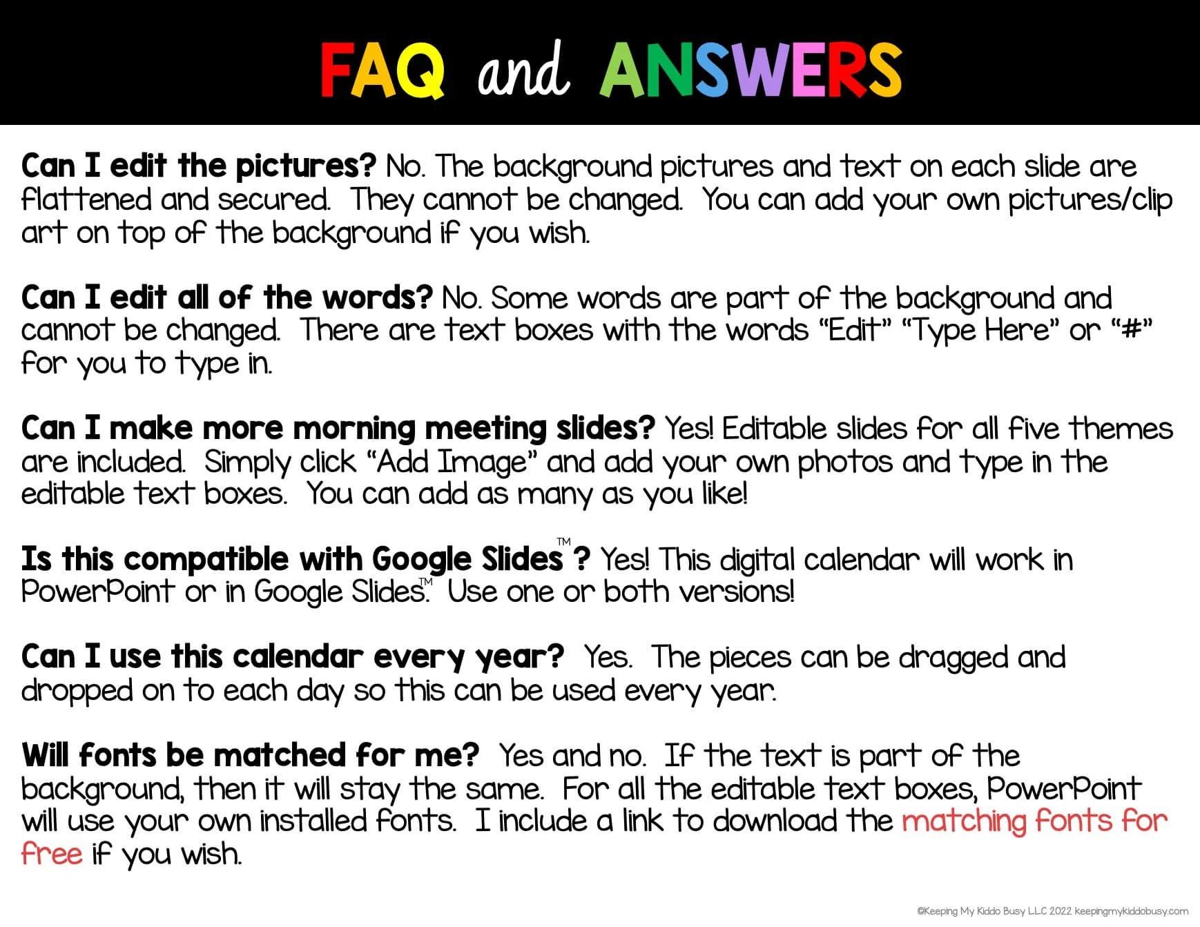 This video explains how to use this calendar kit in either Google Slides or PowerPoint.
