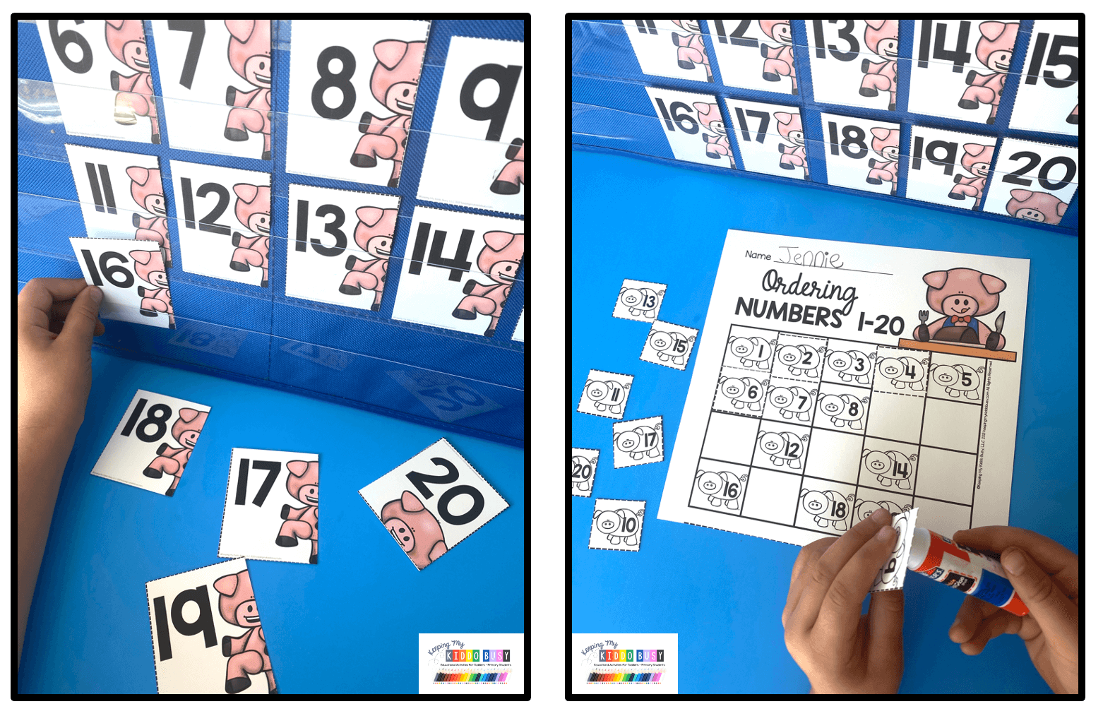 We love hide and seek, print two sets of the number cards and play memory, go fish, etc. These are perfect to move to a center once you have taught them whole group. We work on ordering numbers 1-20 all year.