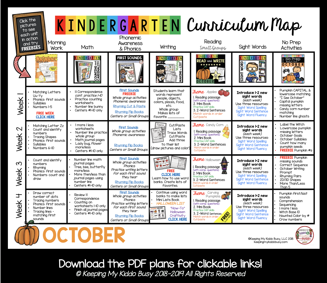 FREE OCTOBER LESSON PLANS FOR KINDERGARTEN